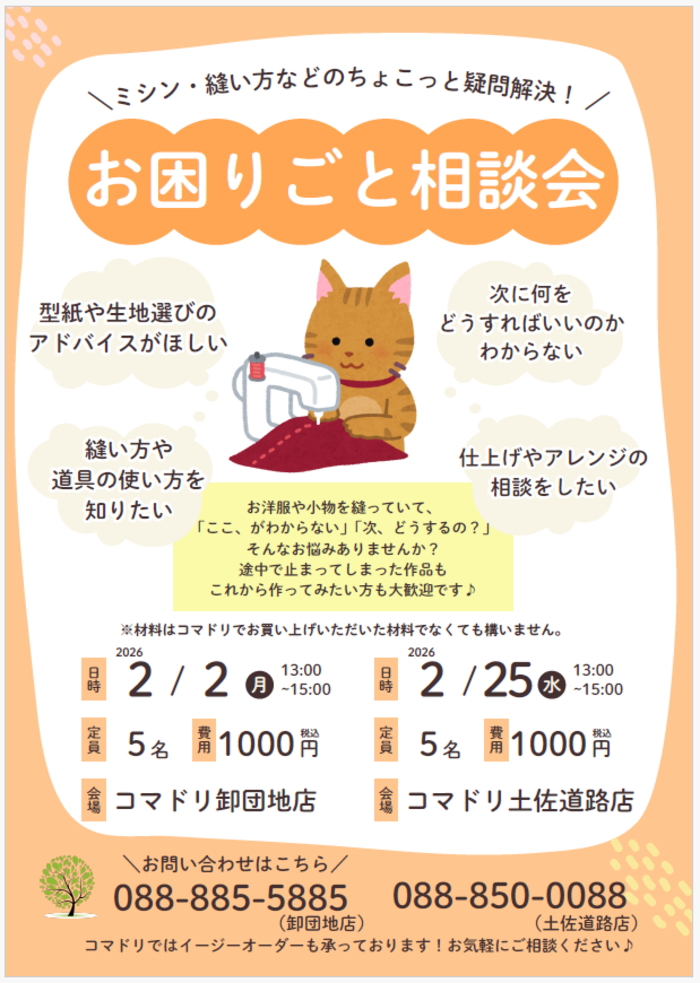 お困りごと相談会(卸団地店2/2)土佐道路店(2/25)開催イベント2026.01.23