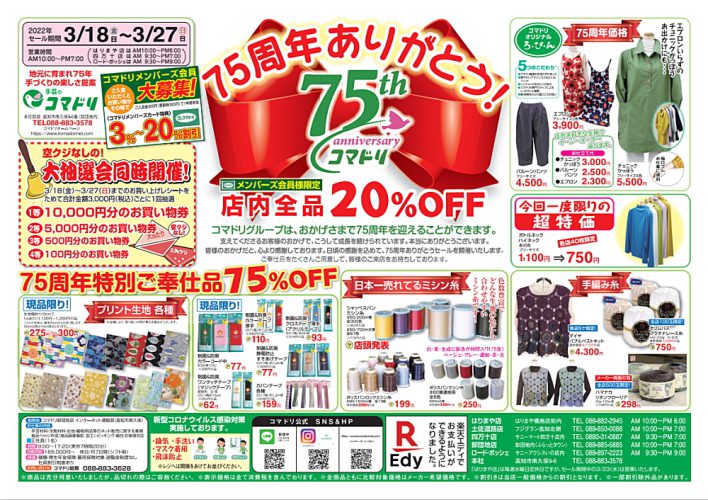 【終了しました】75周年ありがとうセール第2弾3/18(金)~3/27(日)