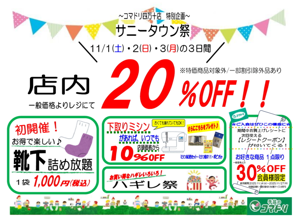 サニータウン祭★11/1(土)2(日)3(月)四万十店
